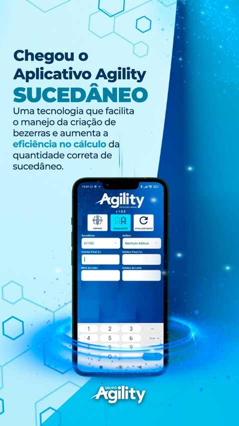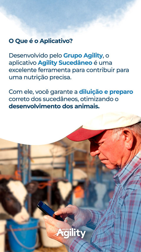 O aplicativo Agility Sucedâneo foi desenvolvido pelo Grupo Agility para facilitar a criação de bezerras por meio de uma ferramenta tecnológica simples e eficaz. Ele ajuda os produtores a calcular a quantidade correta de sucedâneos a serem diluídos e a forma de preparo mais adequada, de acordo com as necessidades nutricionais das bezerras leiteiras. Além disso, o aplicativo oferece uma função de adensamento do leite baseada no teor de Brix, que pode ser medida na propriedade, auxiliando em uma nutrição precisa.